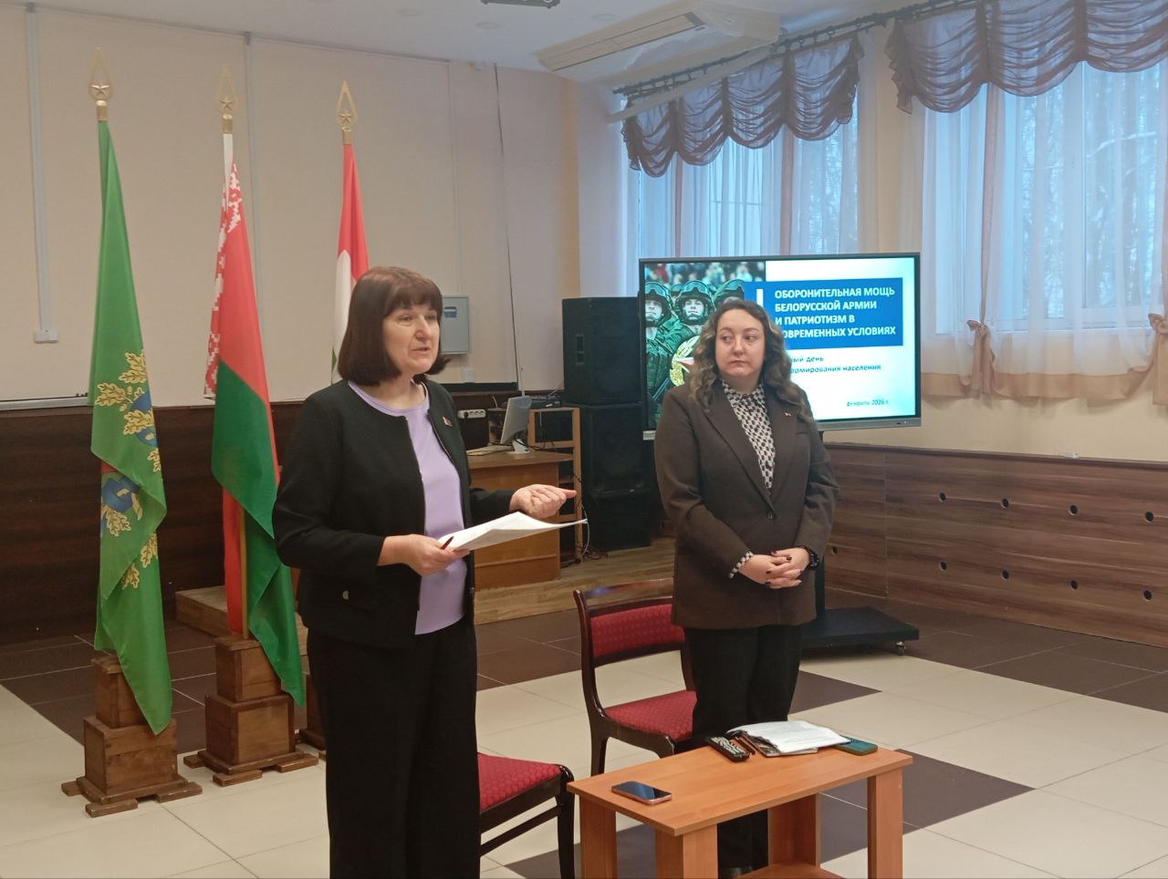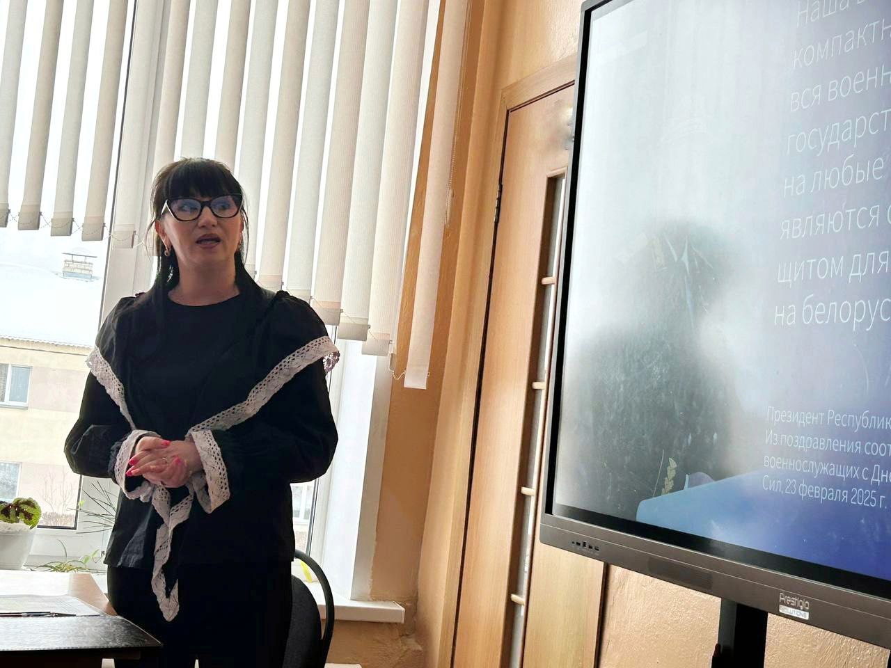 Тема февральского диалога была определена актуальной повесткой дня — «Оборонительная мощь белорусской армии и патриотизм в современных условиях». Участие во встрече также приняла начальник отдела идеологической работы и по делам молодежи райисполкома Светлана Шевелёва.