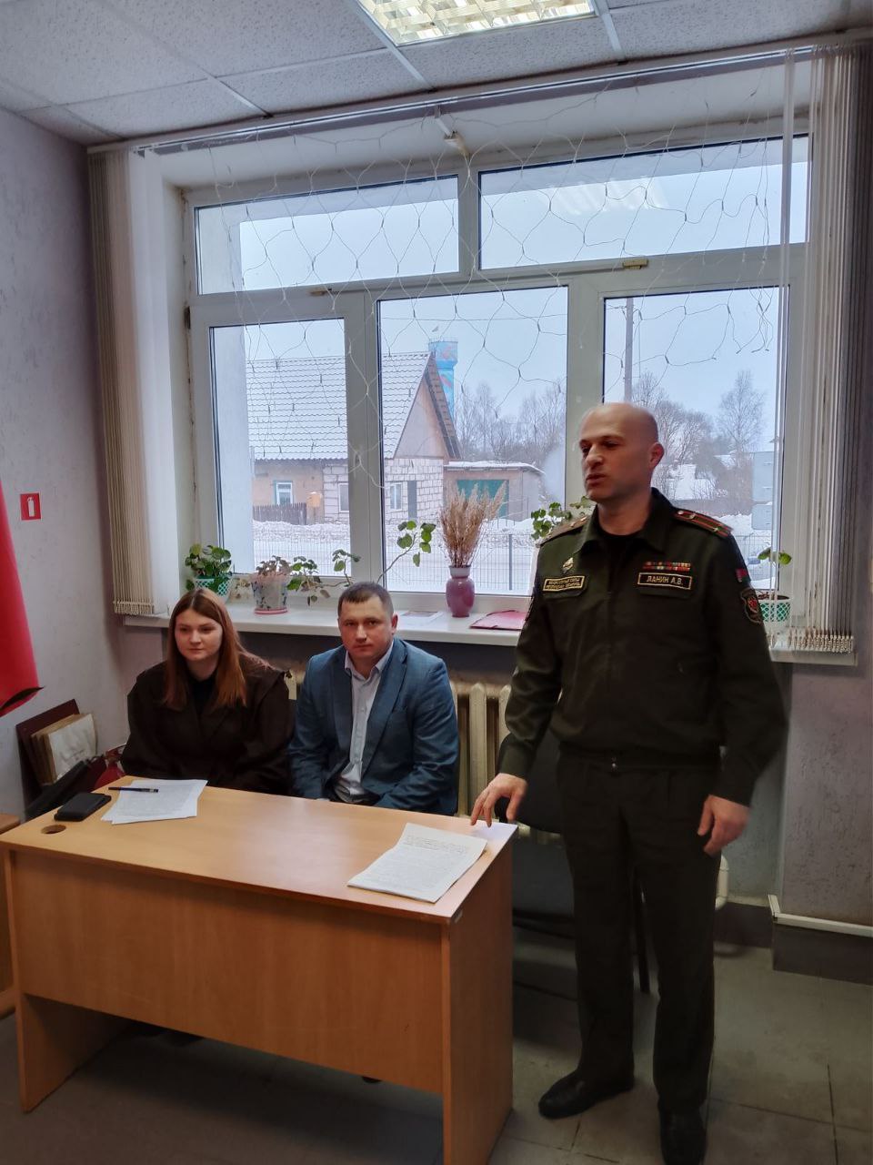 Перед трудовым коллективом выступил начальник обособленной группы Лиозненского района военного комиссариата Витебска, Витебского и Лиозненского районов подполковника Александр Ланин.