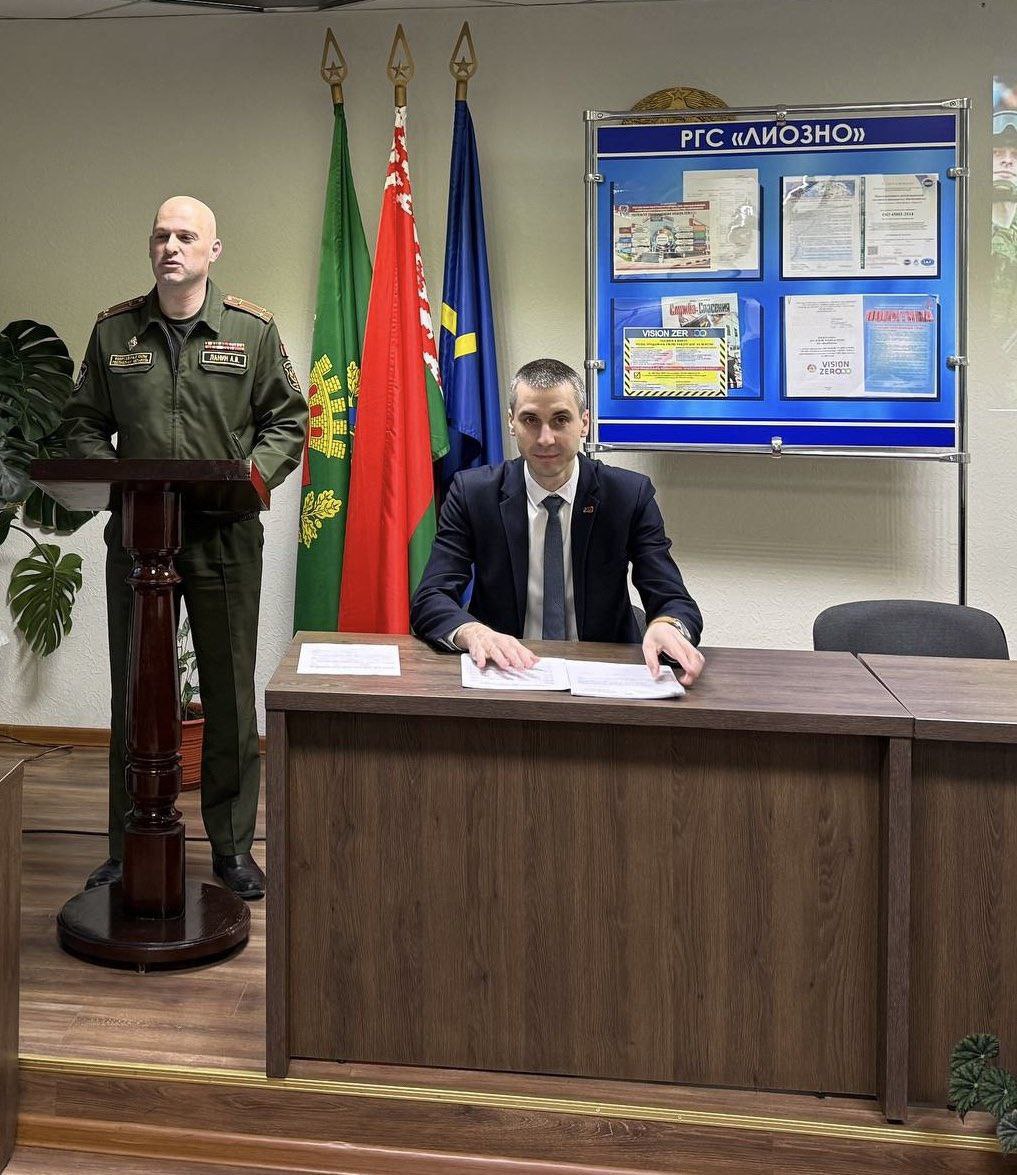 Сотрудники предприятия встретились с начальником обособленной группы военного комиссариата города Витебска, Витебского и Лиозненского районов подполковником Александром Ланиным и главным редактором районной газеты «Сцяг перамогі» Алёной Колосовой.