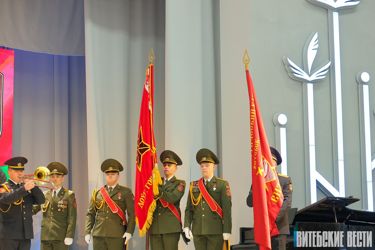 Торжество началось с возложения цветов и зажжения вечного огня у памятного знака "Орден Победы" у ВГУ им. П. Машерова. Затем почетные гости переместились в здание университета, где была развернута выставка, а участники клуба смогли продемонстрировать навыки, полученные на занятиях.