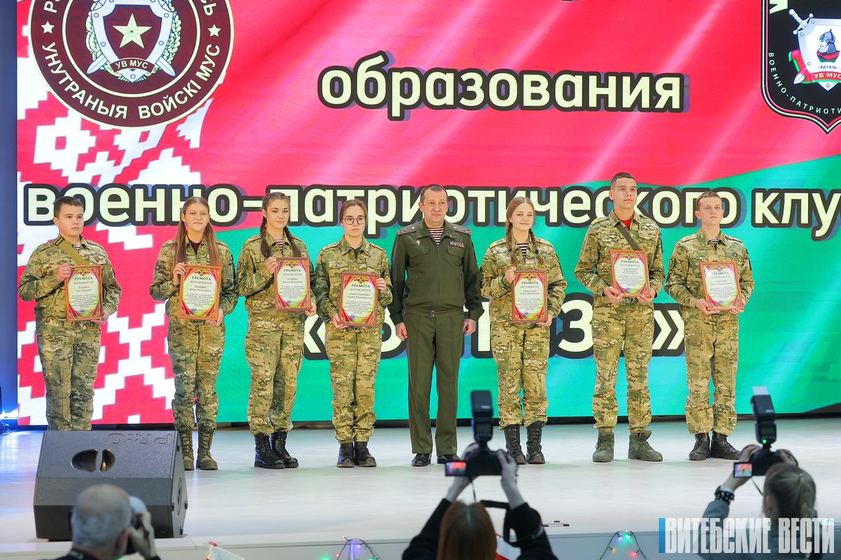 – Первый военно-патриотический клуб под названием «Витязь» появился на базе нашего соединения в декабре 2021 года, а уже в январе 2022-го было сформировано еще четыре: в Глубоком, Полоцке, Новополоцке, Орше. «Витязь» сейчас – мощнейший клуб как по своей численности, так и по результатам, – отметил командир войсковой части 5524 полковник Александр Усманов. – За четыре года здесь успешно прошли обучение 35 воспитанников, большая часть которых поступила в учебные заведения силового блока страны. Воспитанники клуба становились чемпионами и призерами соревнований среди военно-патриотических клубов внутренних войск по рукопашному бою, практической стрельбе, были призерами конкурса «Юный журналист», а в этом году выиграли премию БРСМ. Можно с уверенностью сказать, что участники клуба – будущий кадровый потенциал Вооруженных Сил, высокомотивированные патриоты своей Родины.
