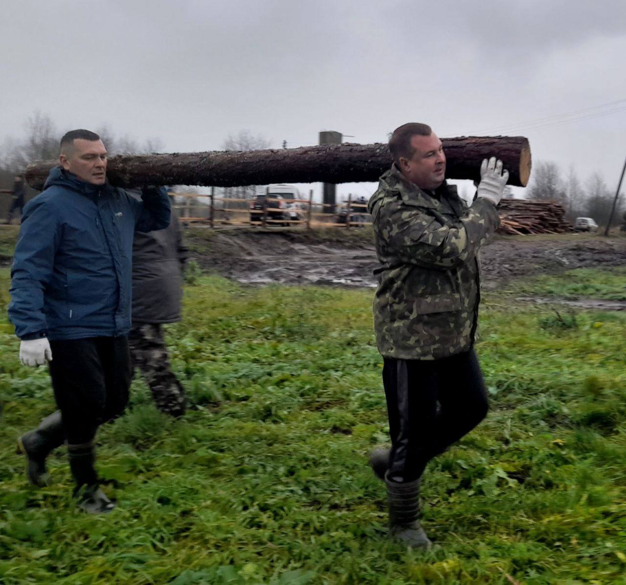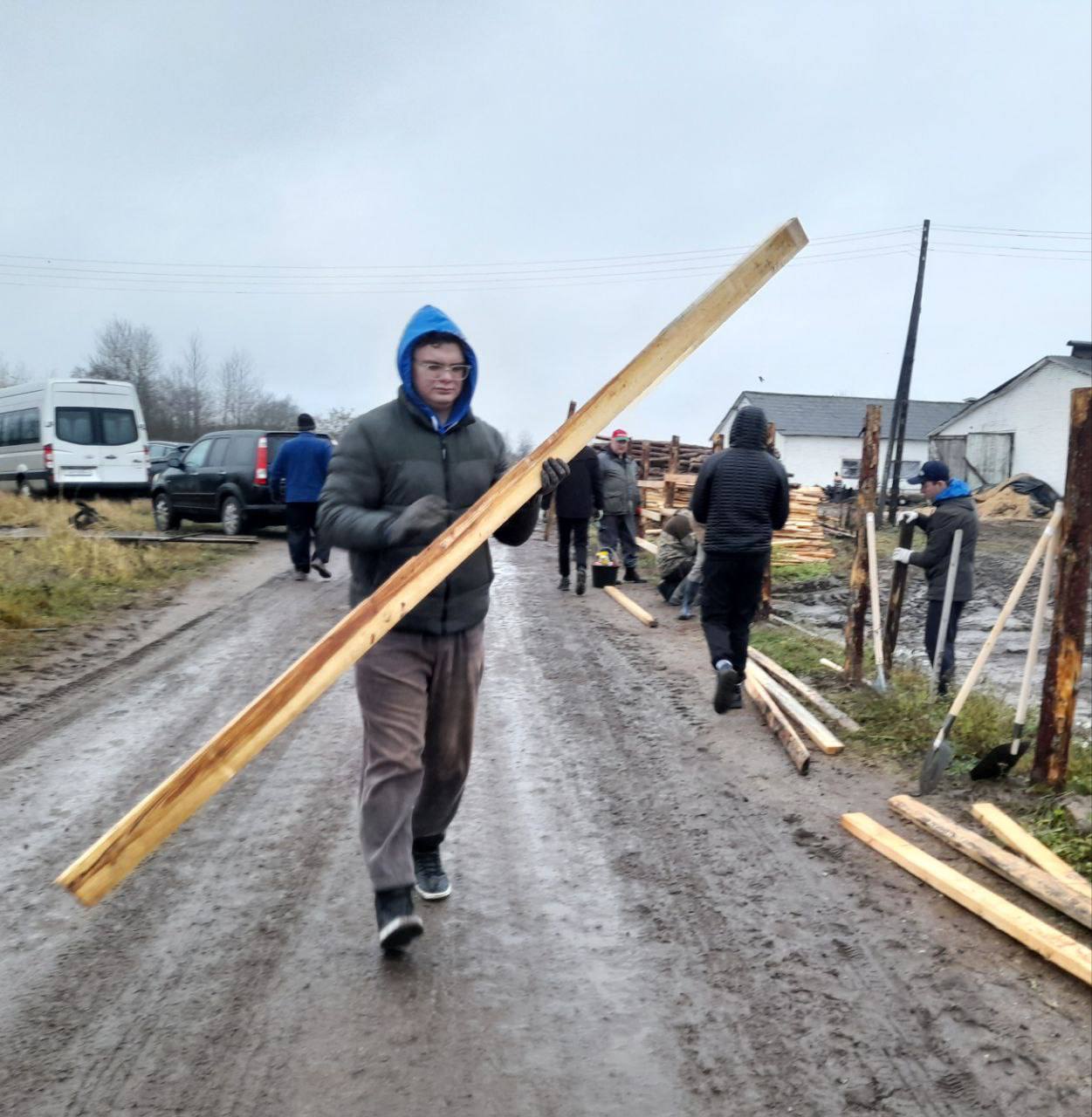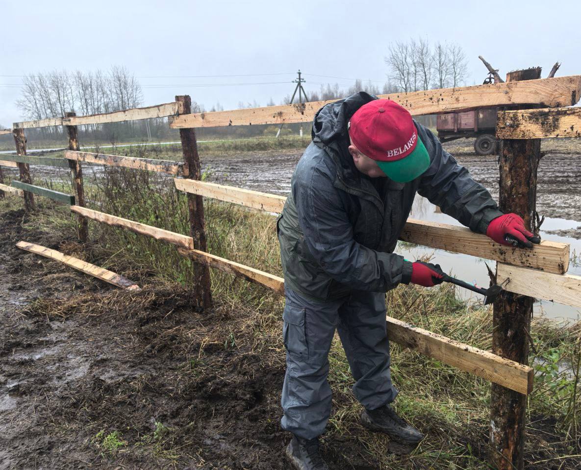Строят выгульную площадку для животных, занимаются распиловкой дров, наводят порядок в зданиях ферм и на территории, бетонируют пол.