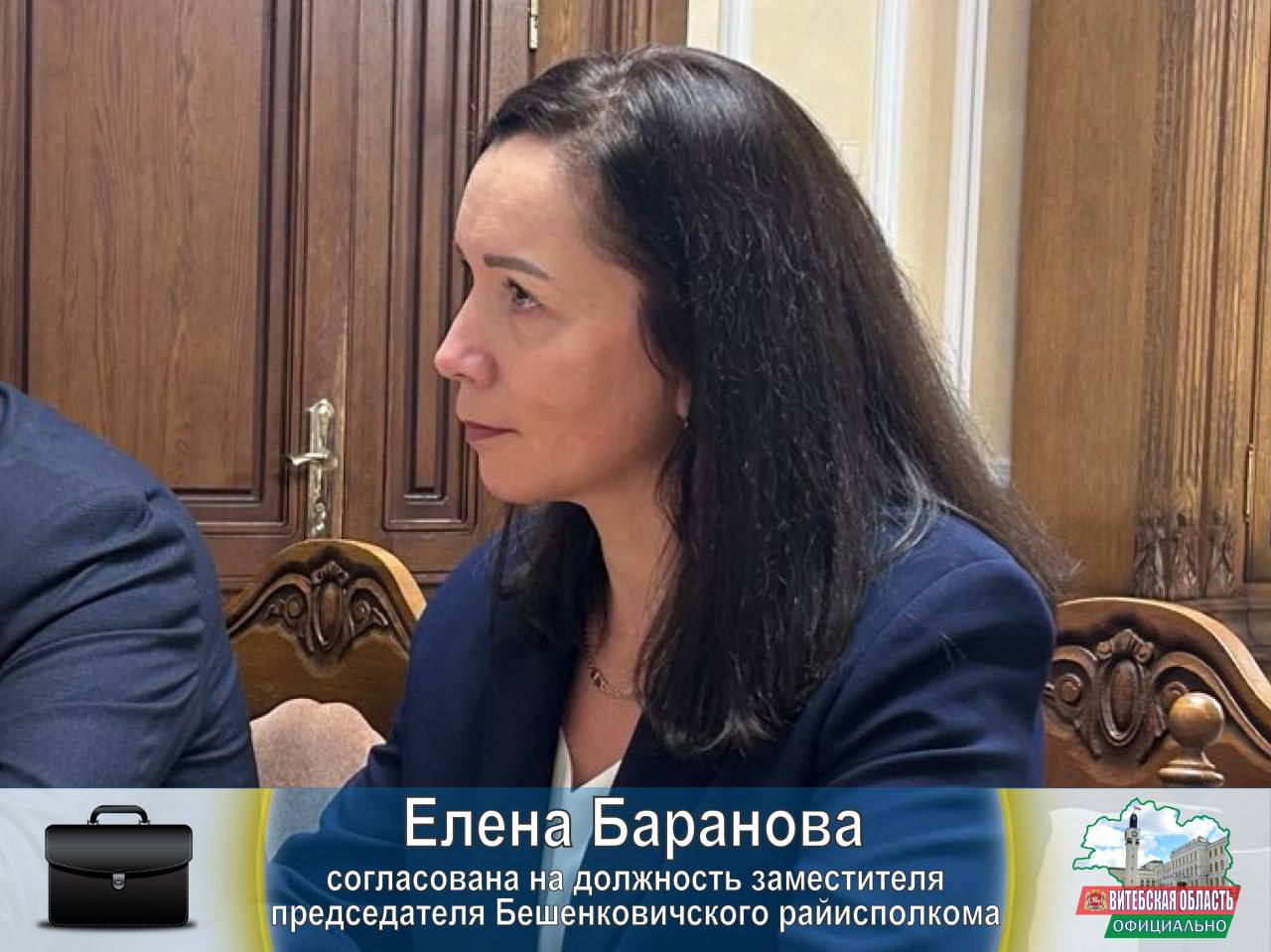 Елены Барановой на должность заместителя председателя Бешенковичского райисполкома;
