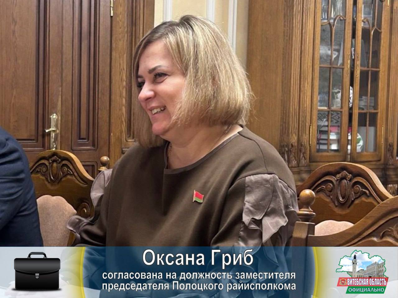 Оксаны Гриб на должность заместителя председателя Полоцкого райисполкома;