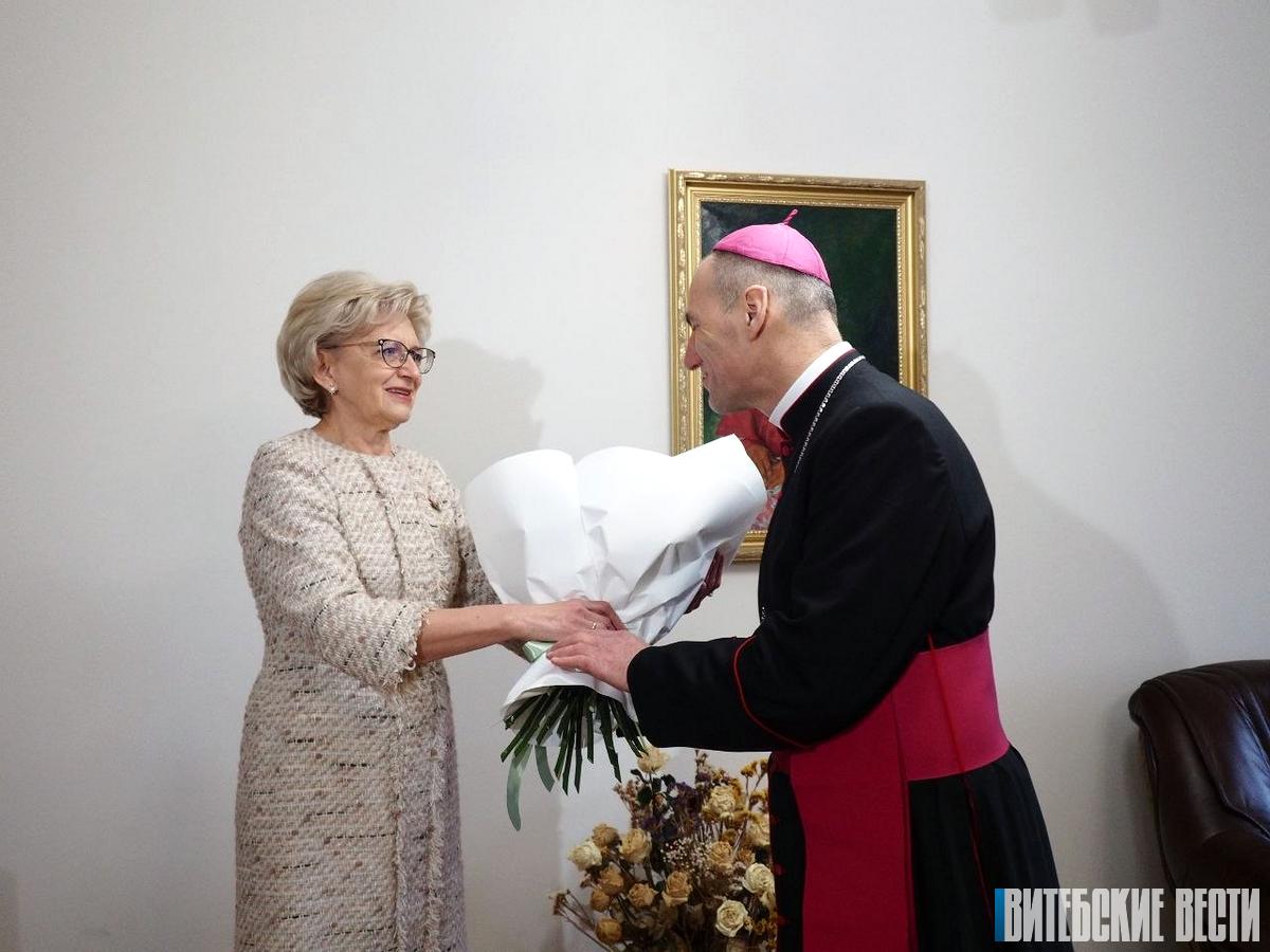 Вручая букет белых роз, представитель власти поблагодарила главу диоцезии за служение, пожелала здоровья, удачи во всех благих начинаниях.