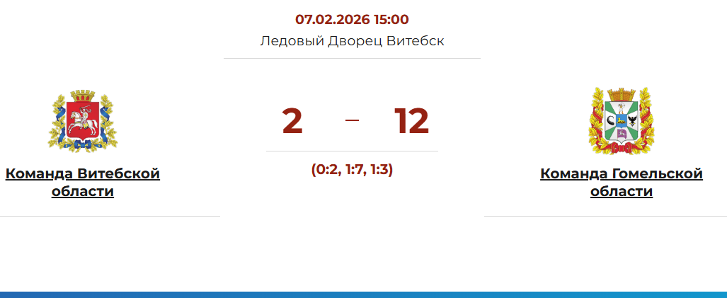 Вчера в северной столице в очередном матче Республиканской хоккейной лиги среди любительских коллективов на призы Президентского спортклуба встречались команды Витебской и Гомельской областей. Наши земляки потерпели очередное крупное поражение. Игра завершилась со счетом 2:12, сообщает сайт Президентского спортклуба.