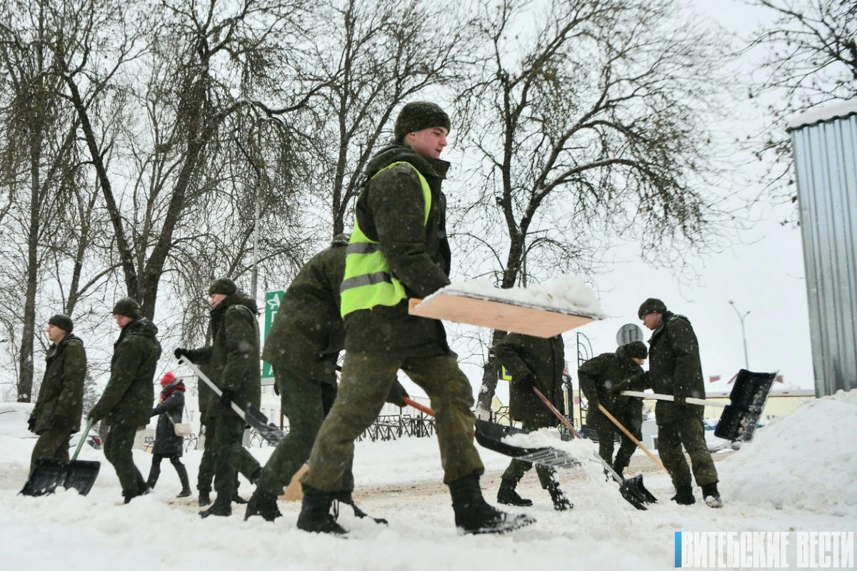 «Снежный десант»: военнослужащие 103-й бригады взяли под шефство больницу скорой помощи в Витебске