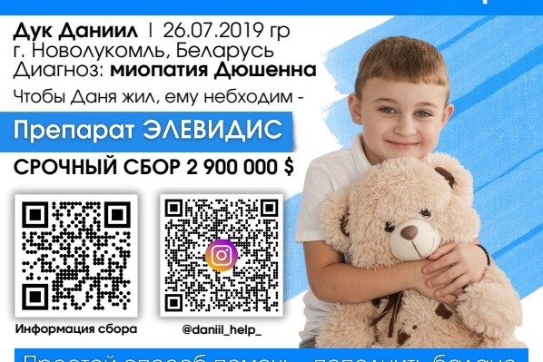 Дук Даниил 2019 года рождения страдает от тяжелого генетического заболевания – Мышечная дистрофия Дюшенна-Беккера. С каждым днем мышцы Даниила слабеют, он испытывает трудности…