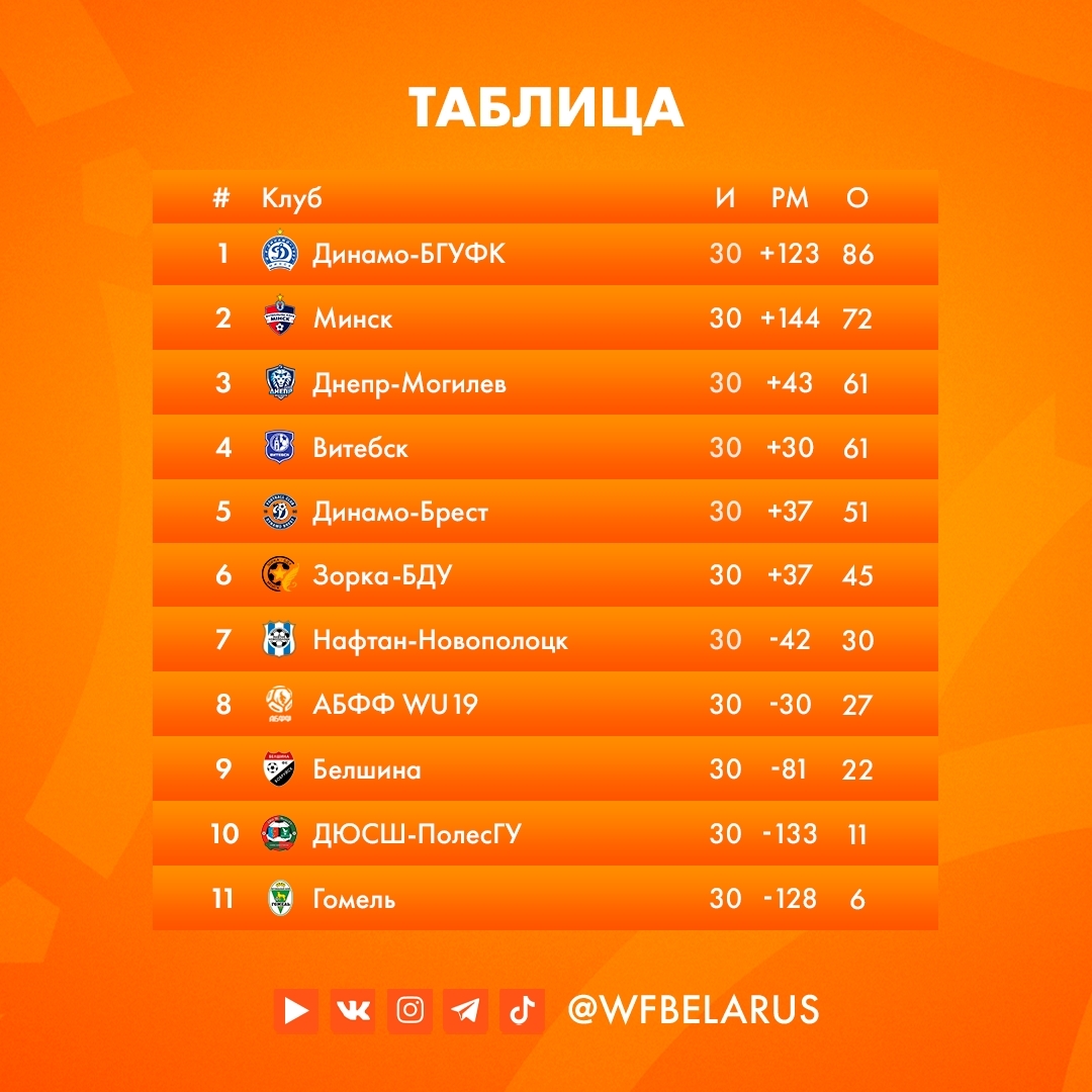 Как футболистки «Витебска» финишировали в первенстве страны?